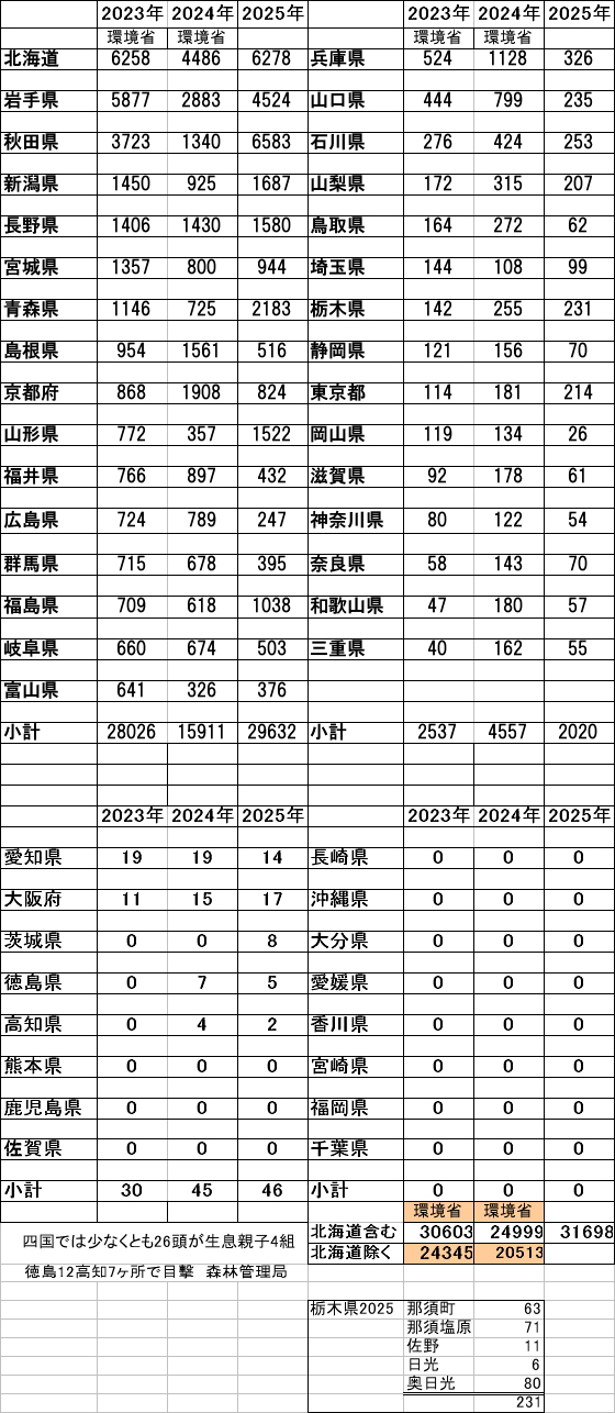 四国では少なくとも26頭、4組の親子が確認されています。 放っておくと、狭いエリアですから秋田県の様にも成り兼ねません。 四国の方は、ご用心を。 情報は林野庁森林管理局発表。
