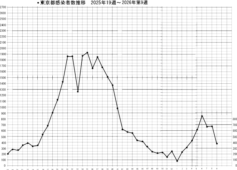 これは大変に少なくなった、定点観測医療機関に受診した人だけの数値です。