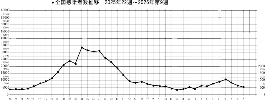 今週9週は5105人です。 しかし、コロナ感染者が減っているだけです。