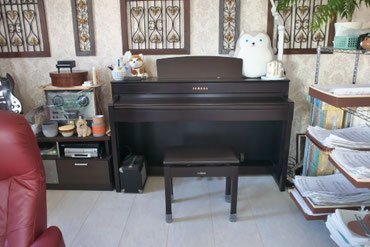 2階のヤマハ 雑然としていますね。 楽譜は整理して下に降ろします。