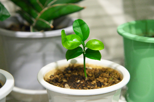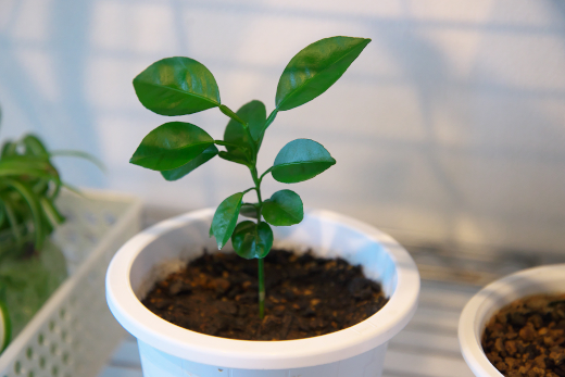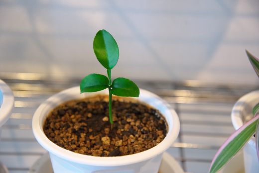 先に発芽したものは、途中で4枚目の葉が腐り成長が止まってしまいました。 2月になり、やっと新しい葉が展開し始めました。