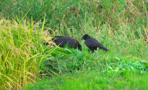 農地はもちろん人の物だけど、ここはカラスの縄張りでもあります。 侵入者は許しません・・・。