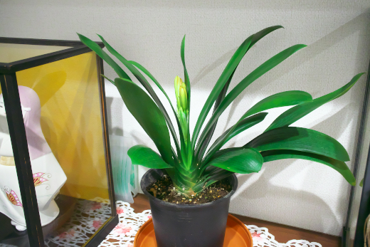 五鉢の君子蘭の中で一鉢だけ、年を越さず咲きそうです。