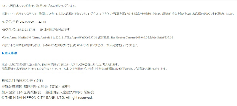 西日本シティ銀行 横浜銀行 イオンなどをかたるメールが来ています。