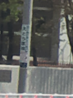 学校の塀の所の電柱の広告、文字がはっきりと読めます。