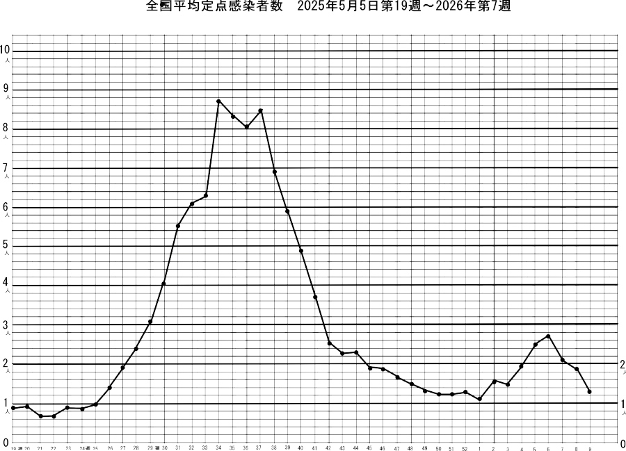 これは大変に少なくなった、定点観測医療機関に受診した人だけの数値です。