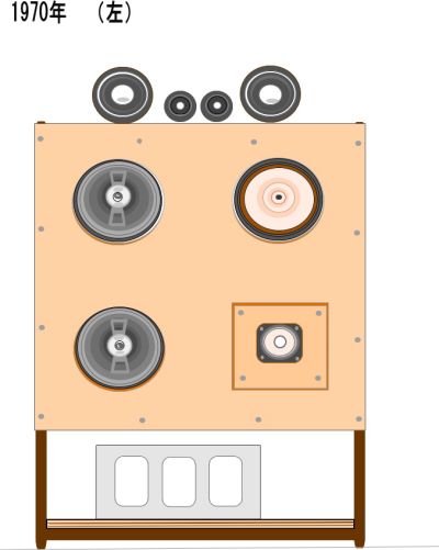 | 1970年のスピーカーシステムをイラストで復元してみた。 左右の大きさは揃うようにした。 |