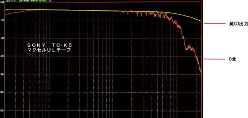 | ソニーTC-K5 往年の59000円帯のデッキ。激戦区のデッキであった。 0dbでは高域がなだらかに落ちている。また低域も下降している。 |