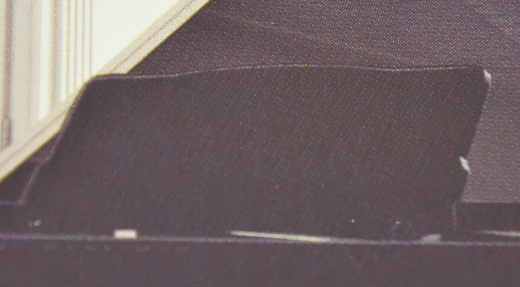 このパンフレットのグランドピアノを見て、ふと思いました。 ちょっと幅が広く、奥行きも長いようです。 コンサートグランドピアノかも知れません。 注目したのは、キャスター・・・。 ダブルキャスターですが。どうやら真鍮に銀メッキぽいですね。 足もやや太めで足の付け根と、ペダルの支えに装飾があります。 蓋を支える棒の穴は一つだけのようです・・・、全開のみ想定ですね。 他も現在のピアノと大きく異なる所があります・・・。 響板の折り返し部分(蓋を閉じたときに、手前の開ける部分)が細いです。 現在のどのピアノとも異なっていますね。 3本ペダルですから、それほど昔の製品ではないように思えます。 色々調べましたが、 スタインウエイは楽譜台がミッキーマウスのようになっていますのでパス・・・。スタインウエイはモデルチェンジを80年もしないメーカーですから・・・。 ヤマハも違ってて、どうやら〇〇〇のような感じ・・・。 譜面台の形状と足が・・・(-_-;)。