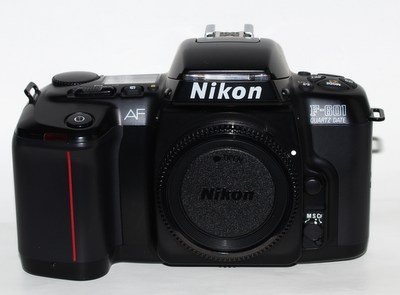 ニコンF601QD。 ニコン三桁シリーズの中堅機です。 横幅の割りに高さがなく、やや持ちにくいのが残念。 レンズも今時のは制約があり使えない場合があります。 |